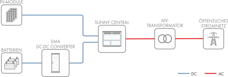 Cost-efficient connection of battery-storage systems via DC coupling