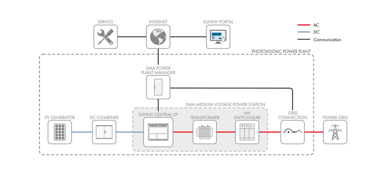 The SMA Medium Voltage Power Station is the most compact combination of a central inverter, transformer and switchgear. It can be transported easily across the globe and is designed for quick project commissioning on site. This solution also complies with the highest international safety standards.